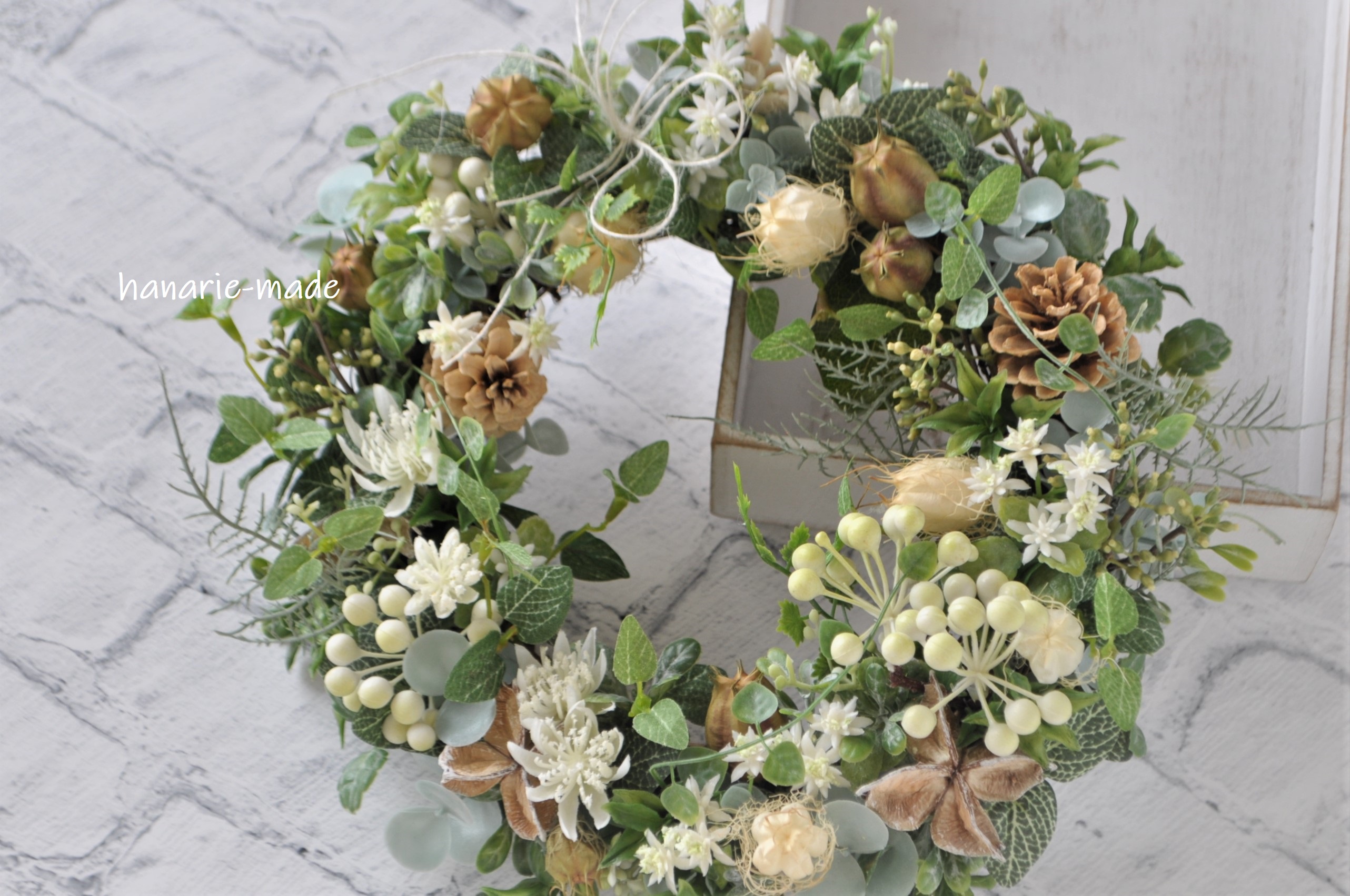 木の実とふうせんポピー・グリーンのナチュラルリース:木の実